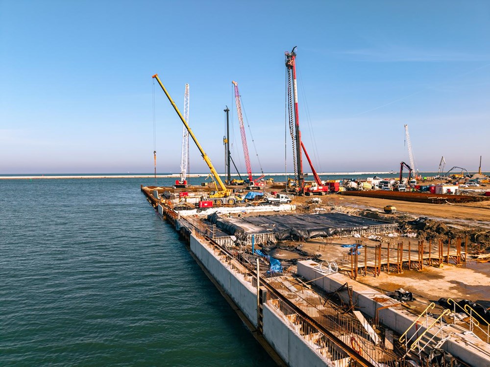 Jednocześnie prowadzone będą prace instalacyjne oraz montaż wyposażenia hydrotechnicznego, co pozwoli utrzymać płynność harmonogramu i zapewnić sprawny postęp budowy terminala.