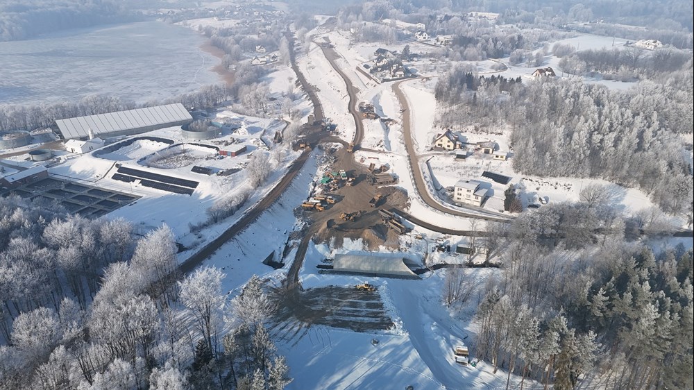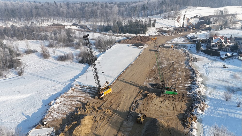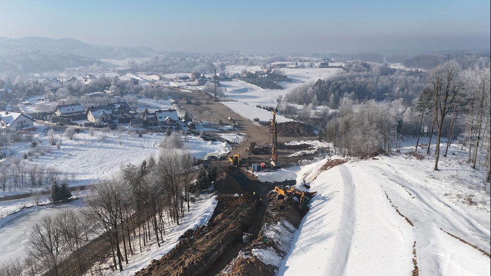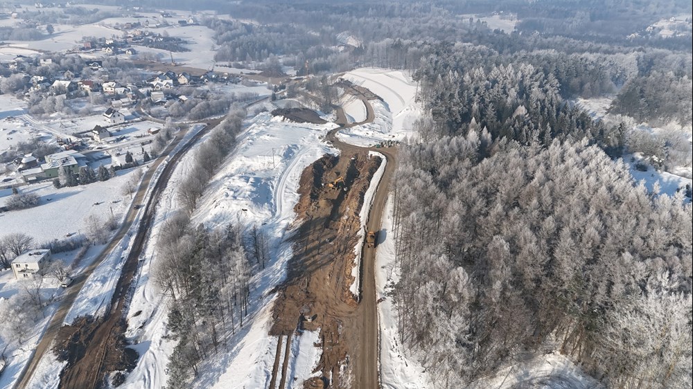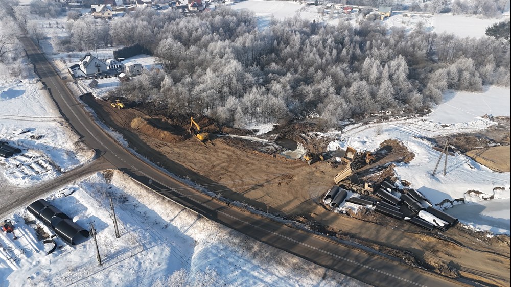 W tym momencie wykonawca prowadzi wymianę nienośnych gruntów. Wzmacniane są podłoża i pozostałe roboty ziemne, jeśli pozwalają na to warunki atmosferyczne. Cały czas również dowożone jest kruszywo, które będzie wbudowane w nasypy przyszłej drogi.
