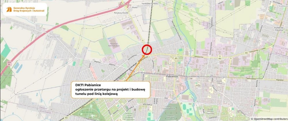 GDDKiA ogłosiła przetarg na budowę tunelu pod torami kolejowymi w Pabianicach. Bezkolizyjny przejazd powstanie w ciągu drogi krajowej nr 71. W poprzednich latach w pobliżu przejazdu często dochodziło do kolizji.