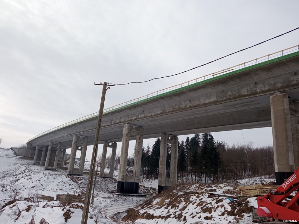 Roboty ziemne, branżowe, geodezyjne i saperskie trwają natomiast na odcinku Dukla – Barwinek. Pod przyszłym wiaduktem w Cergowej, który powstaje w ramach tego zadania, testowane są pale i nośność fundamentów. Na budowie pomiędzy węzłami Domaradz i Krosno wykonawca transportuje materiały, usuwa karpiny oraz wykonuje wykopy i nasypy. Mostowcy na tym kontrakcie też nie zwalniają tempa, trwa m.in. zbrojenie przyczółków.