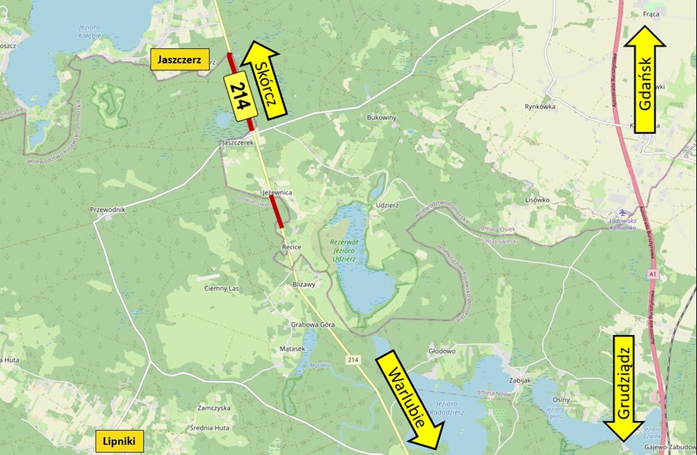 Przetargami mają być objęte odcinki leżące przy granicy z województwem pomorskim. Chodzi o około dwukilometrowy odcinek w powiecie świeckim, gdzie zostanie przebudowana jezdnia, odtworzone będą pobocza oraz rowy odwodnieniowe, a także zamontowane zostanie nowe oznakowanie pionowe oraz poziome.
