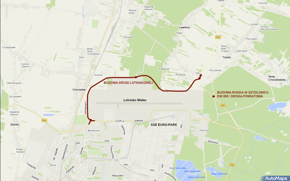 Podkarpacki Zarząd Dróg Wojewódzkich w Rzeszowie rozpoczął realizację dwóch ważnych inwestycji. Jest to budowa drogi wojewódzkiej obsługującej Specjalną Strefę Ekonomiczną Euro-Park i lotnisko w Mielcu, a także budowa ronda w Szydłowcu w gminie Mielec.