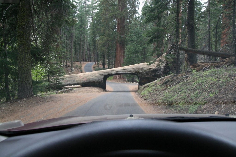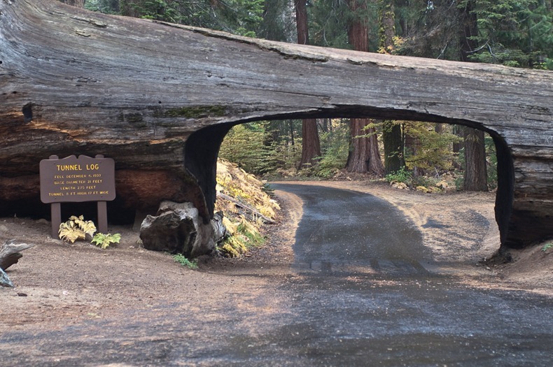 Ciekawa sytuacja miała miejsce także w innym parku narodowym w Californii, a dokładnie w Parku Narodowym Sekwoi. Tam, w 1937 roku, sekwoja o wysokości 84 metrów runęła na drogę prowadzącą przez las. Wtedy władze parku wydrążyły tunel w powalonym drzewie. Tak powstał „Tunnel Log”, a droga była znowu przejezdna.