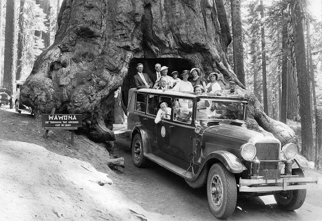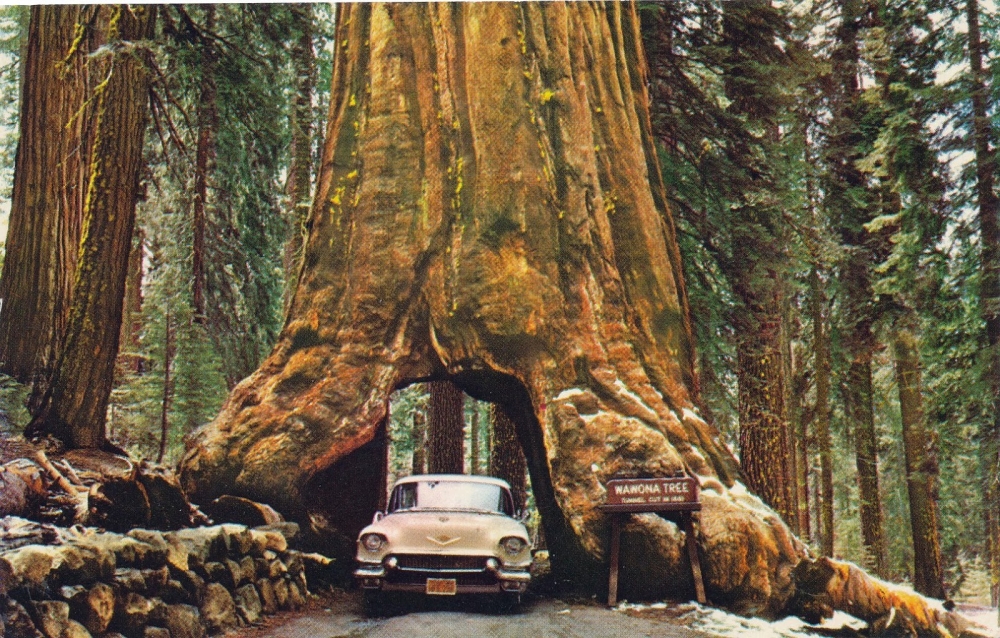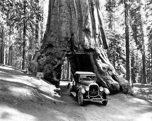 Co jeśli na drodze, która ma biec przez las stoi ogromna sekwoja, która ma ok. 2,3 tys. lat? Może zamiast ją wycinać warto wydrążyć w niej tunel? Tak właśnie zrobiono w 1881 roku w Narodowym Parku Yosemite w stanie California w USA. Drzewo przez 82 lata służyło jako tunel. Było tak ogromne, że bez trudu przejeżdżały przez nie, najpierw powozy konne, a potem samochody.