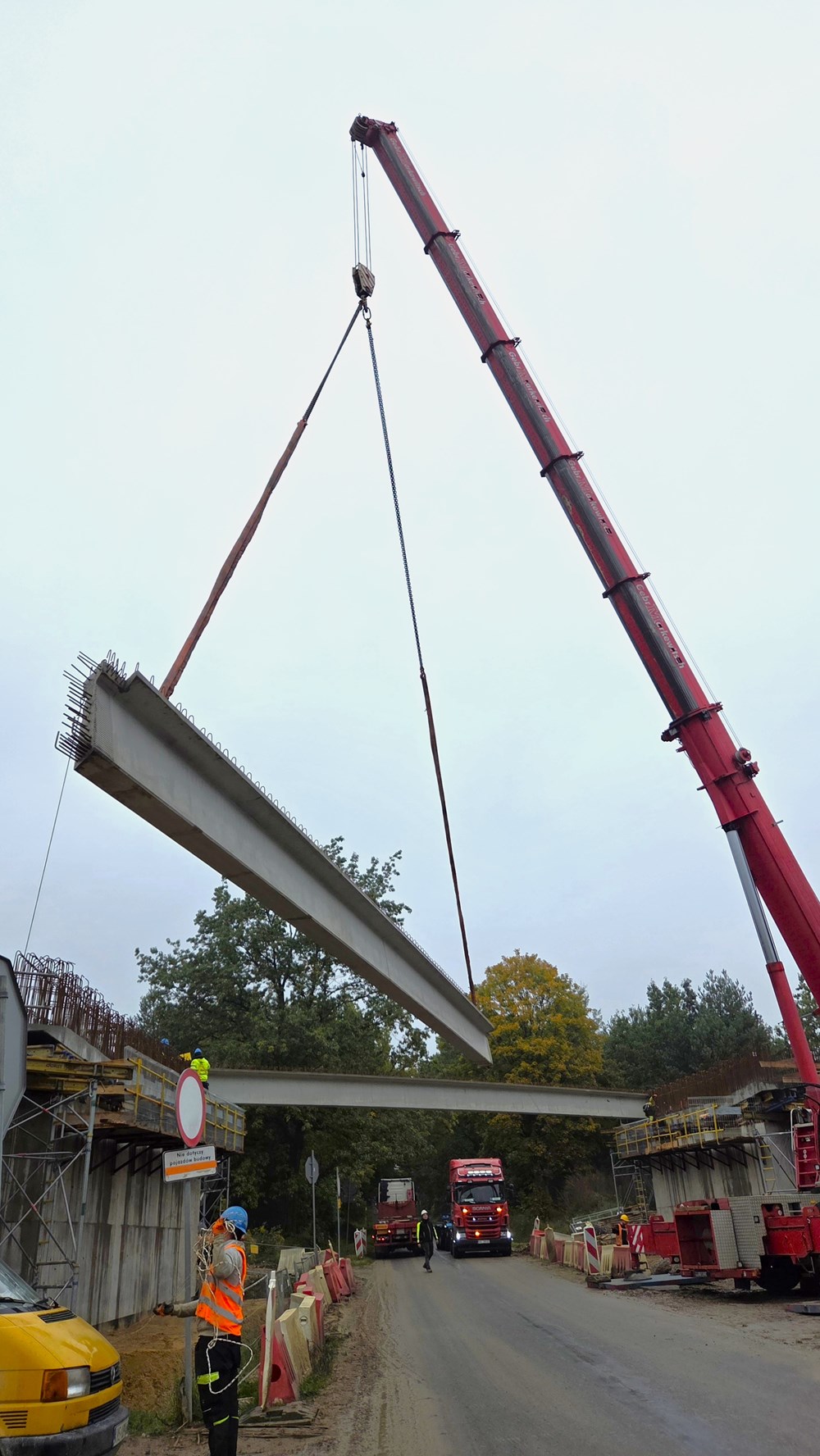 Znaczące postępy widać też przy budowie obiektów inżynierskich, między innymi na budowie obiektu mostowego, gdzie zakończono montaż belek strunobetonowych, które tworzą główną konstrukcję nośną. Prace prowadzone były nad czynną drogą wojewódzką DW794 i wymagały ścisłej koordynacji logistycznej oraz zachowania najwyższych standardów bezpieczeństwa. Cała operacja przebiegła zgodnie z harmonogramem i stanowi ważny etap w realizacji inwestycji.