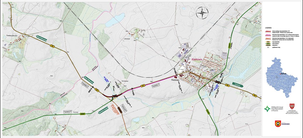 Od połowy maja 2024 roku trwały prace nad zmianą przebiegu DW 197 na odcinku Pawłowo Skockie – Kiszkowo. W ramach inwestycji czterowlotowe skrzyżowanie DW 197 od strony Kiszkowa zostało przebudowane na dwa skrzyżowania trzywlotowe, jedno drogi wojewódzkiej i powiatowej (z łagodniejszym łukiem) i drugie oddalone (drogi powiatowej z gminną). Równolegle prowadzone były prace przy budowie nowego mostu, który zastąpił istniejący obiekt. W granicach inwestycji powstała również dwukierunkowa bitumiczna droga dla rowerów w kierunku Kiszkowa o szerokości 2,0 m, kanalizacja deszczowa, peron autobusowy oraz elementy BRD, w tym aktywne oznakowanie pionowe na skrzyżowaniu DP z DW.