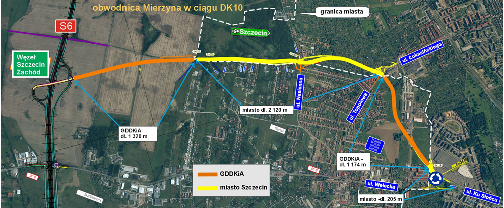 Obwodnica Mierzyna w ciągu DK10 to wspólna inwestycja GDDKiA i miasta Szczecin, gdyż będzie poprowadzona zarówno przez teren miasta, gdzie zarządzającym drogami krajowymi jest prezydent, a częściowo przez tereny zamiejskie, gdzie trasa podlega administracji GDDKiA. Ma zapewnić dojazd do Zachodniej Obwodnicy Szczecina w ciągu poprzez wyprowadzenie ruchu tranzytowego z drogi krajowej nr 10 z miejscowości Mierzyn.