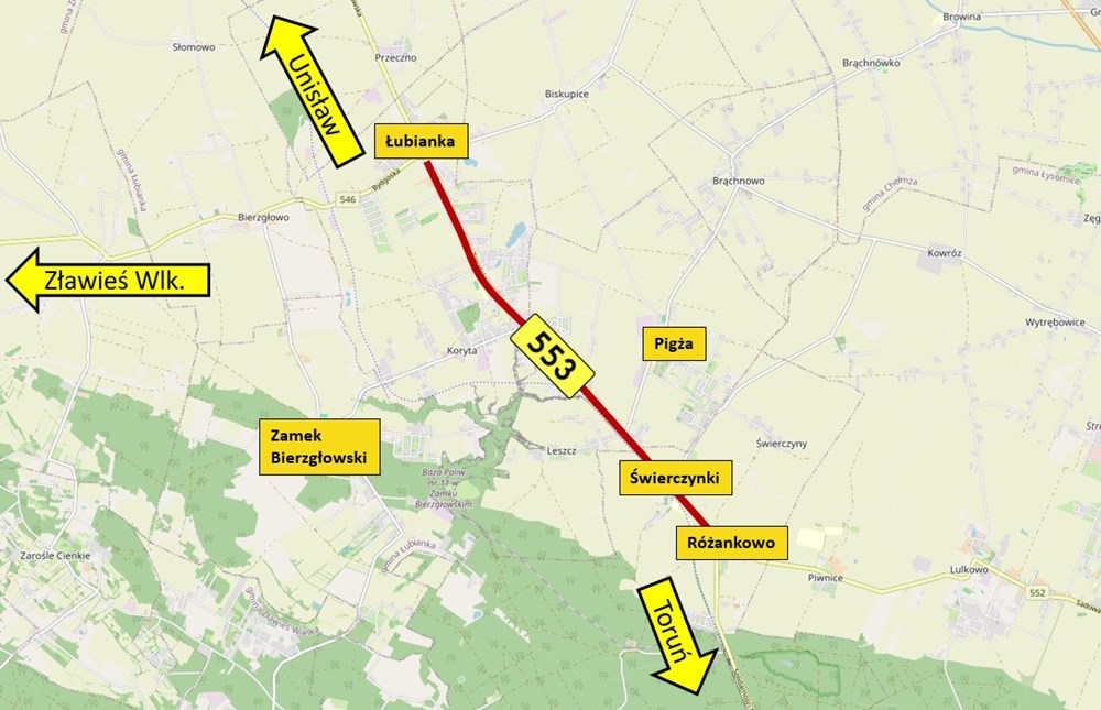 Zarząd Dróg Wojewódzkich w Bydgoszczy przygotowuje się do remontu ważnej drogi w powiecie toruńskim. Chodzi o drogę wojewódzką nr 553 między Różankowem i Łubianką.