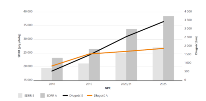 W GPR 2025 ponad 60 proc. całej pracy przewozowej wykonanej na sieci dróg krajowych skupia się na 4518 km tras. Prawie 90 proc. tej pracy wykonują autostrady i drogi ekspresowe. W dużym uproszczeniu oznacza to, że 60 proc. ruchu pojazdów na sieci dróg krajowych skupia się na nieco ponad 4500 km tras. Praca przewozowa to jeden z podstawowych mierników efektywności w transporcie (obliczany jako iloczyn długości sieci i wielkości ruchu).