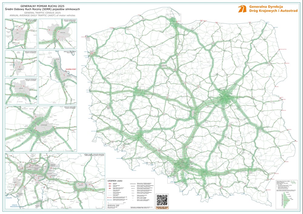 Ostateczny raport dotyczący dróg krajowych pt. Ruch Drogowy 2025 GDDKiA opublikuje w III kwartale 2026 r. Oprócz pełnych analiz i obliczeń parametrów ruchu drogowego, będzie on również uwzględniać wyniki pomiarów uzupełniających, przeprowadzonych w 2026 r. m.in. na wybranych odcinkach dróg oddanych do ruchu w II połowie 2025 r. Wcześniej, pod koniec czerwca br., Generalna Dyrekcja planuje opublikować podsumowania wyników GPR 2025 dla dróg wojewódzkich.