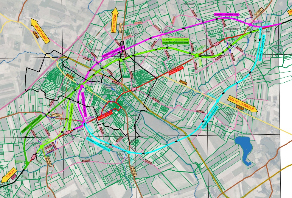 Wniosek o DŚU bydgoska GDDKiA złożyła w maju 2024 roku. Kowalewo Pomorskie otrzyma 8-kilometrową obwodnicę, a przyjęty wariant to W3-2 tzw. jasnoniebieski, który omija miasto od południa.