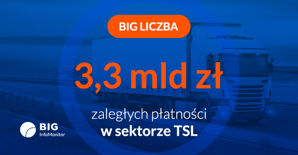Dane o przeterminowanych zobowiązaniach z Rejestru Dłużników BIG InfoMonitor oraz bazy kredytowej BIK pokazują, że łączne zadłużenie branży TSL na koniec 2025 wyniosło prawie 3,3 mld zł, a zaległe płatności posiadało ponad 38 tys. firm. Największe problemy dotyczą transportu drogowego towarów, który odpowiada za około 75 proc. wszystkich zaległości sektora TSL. Dodatkowo 84 proc. przedsiębiorców przyznaje, że ich kontrahenci również nie regulują zobowiązań na czas.