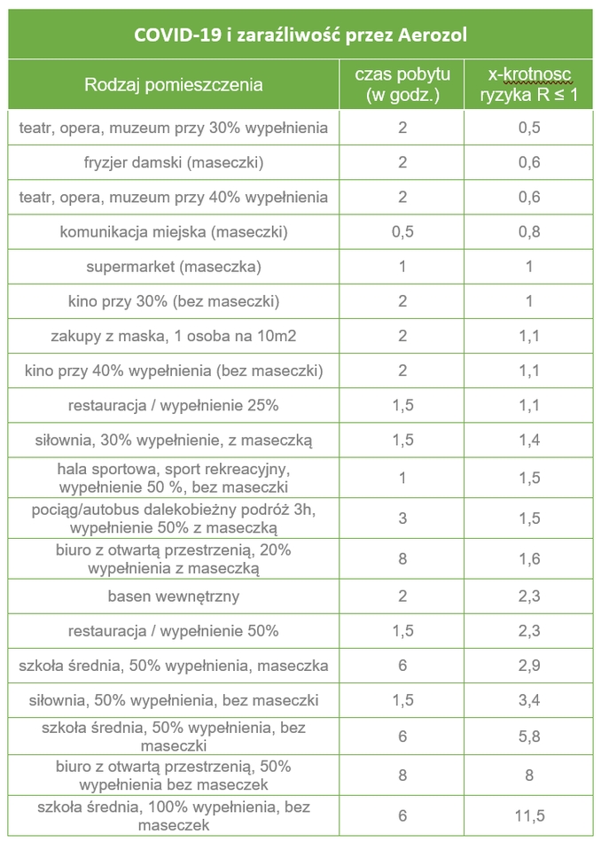 tekst dostępny tutaj), szczególnie duże zagrożenie jest w tych miejscach, gdzie przebywamy przez wiele godzin, a noszenie maseczek nie jest normą.