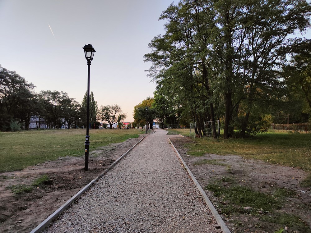 Zarówno w Parku nad Jasieniem, jak i na odcinku do ul. Do Folwarku oraz na odnodze biegnącej przez zieleniec przy ul. Paryskiej widać, że prace są zaawansowane. Podbudowa pod nawierzchnię mineralno-żywiczną jest gotowa, ułożono krawężniki, ustawiono latarnie, a na kolejnych odcinkach pracownicy firmy JAGEZ układają docelową nawierzchnię. Jej atutem będzie przepuszczanie wody – władze Łodzi zamierzają w przyszłości wykonywać nawierzchnie alejek w parkach głównie z tego typu materiałów.