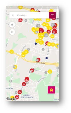 - sprawdzenie lokalizacji pojazdów (autobus, tramwaj, trolejbus) oraz przystanków komunikacyjnych na mapie,