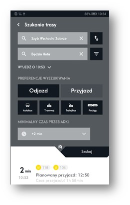 Przy pomocy aplikacji można wyszukać nie tylko przystanki oraz linie. Ważną funkcją jest planowanie podróży. Wystarczy wskazać na mapie punkt jej rozpoczęcia i zakończenia, wpisać adresy lub nazwy przystanków oraz planowaną godzinę rozpoczęcia trasy. Wyszukiwarka wskaże środki transportu oraz minimalny czas przesiadki.