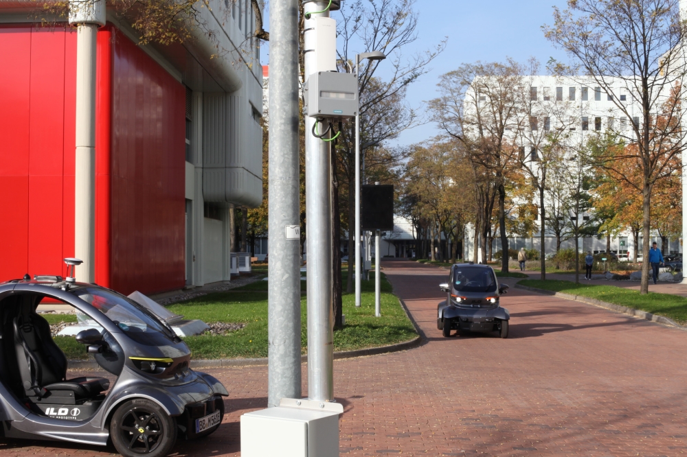 Inteligentna infrastruktura pozwala pojazdom na szybsze identyfikowanie potencjalnych zagrożeń i odpowiednią reakcję. W rezultacie zintegrowany system pomaga optymalizować ruch uliczny. Komunikacja na linii pojazd-infrastruktura (V2I) działa na zasadzie ustandaryzowanego i gruntownie przetestowanego systemu WLANp (ITS-G5). Cały system jest wspierany rozwiązaniami programowymi, które pozwalają kontrolerowi ruchu w centrali na lepszy monitoring sytuacji drogowych oraz ewentualną interwencję. Takie rozwiązanie znacznie zwiększa bezpieczeństwo i wydajność transportu drogowego. Dla większej wygody pasażerowie mogą ściągnąć plan podróży pojazdu autonomicznego poprzez specjalną aplikację.