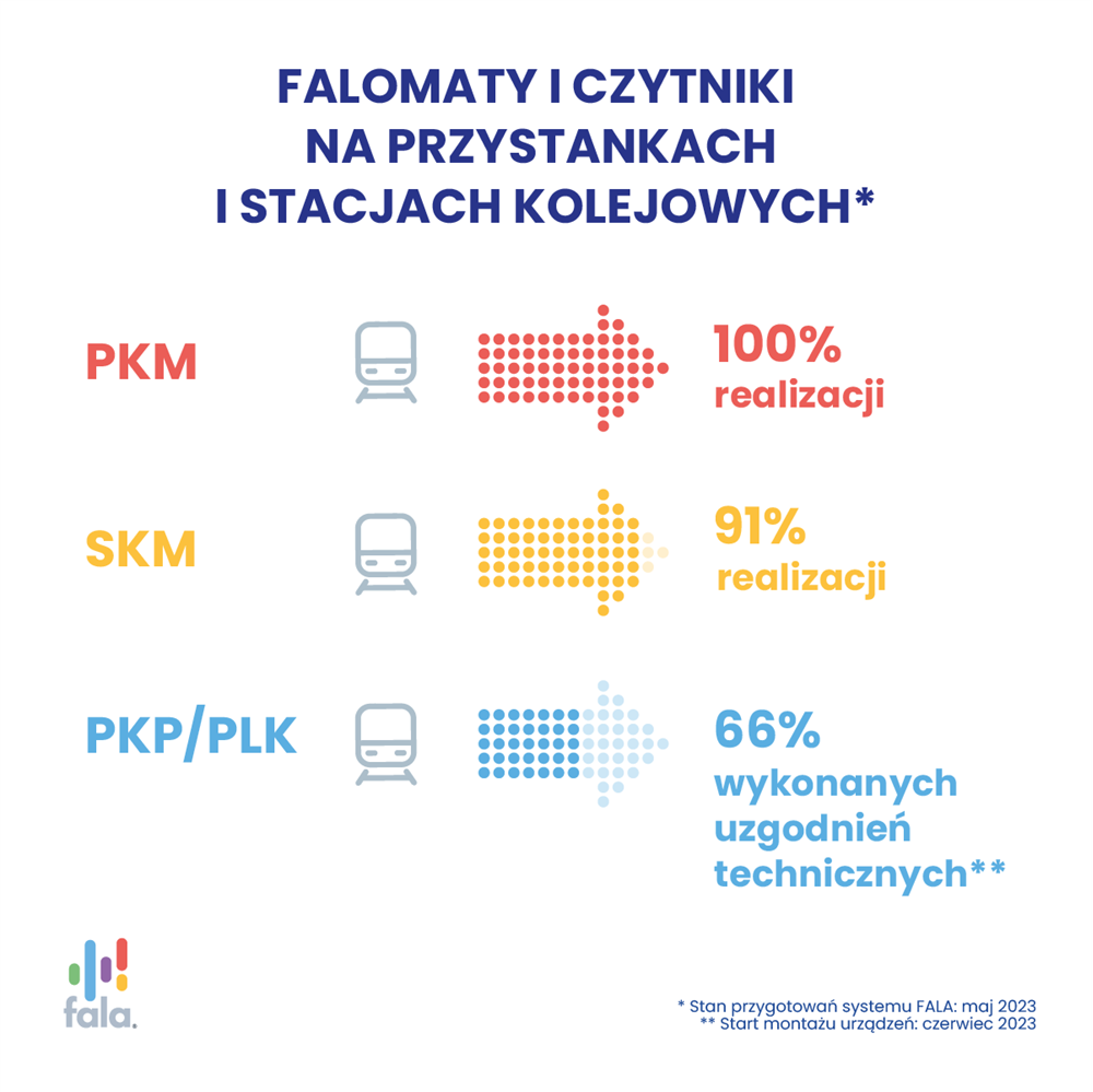 Z systemu Fala korzystać będą pasażerowie na terenie całego województwa. Oznacza to, że system „dotrze” w sumie do 205 stacji i przystanków kolejowych. – Osiem z nich znajduje się na linii PKM i tam zakończyliśmy już montaże. Blisko finiszu jesteśmy też na infrastrukturze SKM, która ma 22 stacje. Głównym wyzwaniem jest jednak aż 175 lokalizacji podlegających pod PKP PLK. Przeprowadzanie uzgodnień z naszymi partnerami jest skomplikowane. Czynimy jednak postępy i z satysfakcją odnotowujemy gotowość do rozpoczęcia instalacji na pierwszej linii – wyjaśnia Radomir Matczak, prezes zarządu InnoBaltiki.