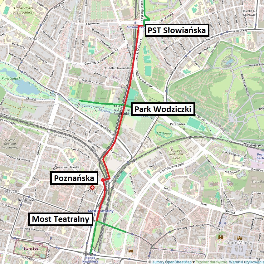 Oczywiście mamy już gotowe kilka tras, które można określić mianem „nisko wiszących owoców”natomiast teraz zostały nam już takie zadania, które są trudne, drogie i skomplikowane, a do tego pozostają jeszcze działania, które mają załatać dziury, żeby nasza sieć była spójna. I tutaj pierwszym i flagowym projektem do wykonania jest Rowerowa PST, a więc trasa z północy na południe miasta. Koncepcje przewidywały, że trasa połączy okolice ulicy Lechickiej z centrum, ale to co jest istotne, to południowy odcinek, od Słowiańskiej do centrum miasta, a dokładniej w rejon Mostu Teatralnego. Trasa rowerowa pozwoliłaby na wykorzystanie potencjału kilkudziesięciu tysięcy mieszkańców Winiar, Winograd oraz Piątkowa, którzy w tym momencie mają dojazd rowerem do centrum, rozumianego jako Stare Miasto, ale takiego dojazdu nie ma do Kaponiery, czy Dworca Zachodniego oraz Jeżyc i Łazarza.