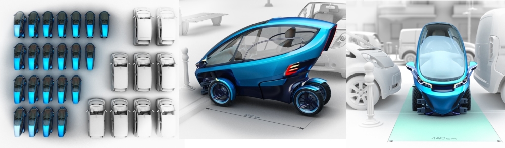 fot. Triggo Triggo jednak jest jeszcze mniejszy niż standardowy samochód, choć na dobrą sprawę oferuje wszystkie funkcje zwykłego auta. Twórcy dość optymistycznie zakładają, że Triggo może parkować prostopadle (zajmuje wtedy 2,1 m szerokości jezdni, choć trzeba podkreślić, że „na styk”). W takim wypadku miejsce dla jednego auta może zająć nawet do pięciu zaparkowanych Triggo. To bardzo optymistyczne założenie, ale nawet jeśli uznamy, że zamiast jednego samochodu możemy w danym miejscu postawić dwa lub trzy Triggo, to i tak duża oszczędność przestrzeni.