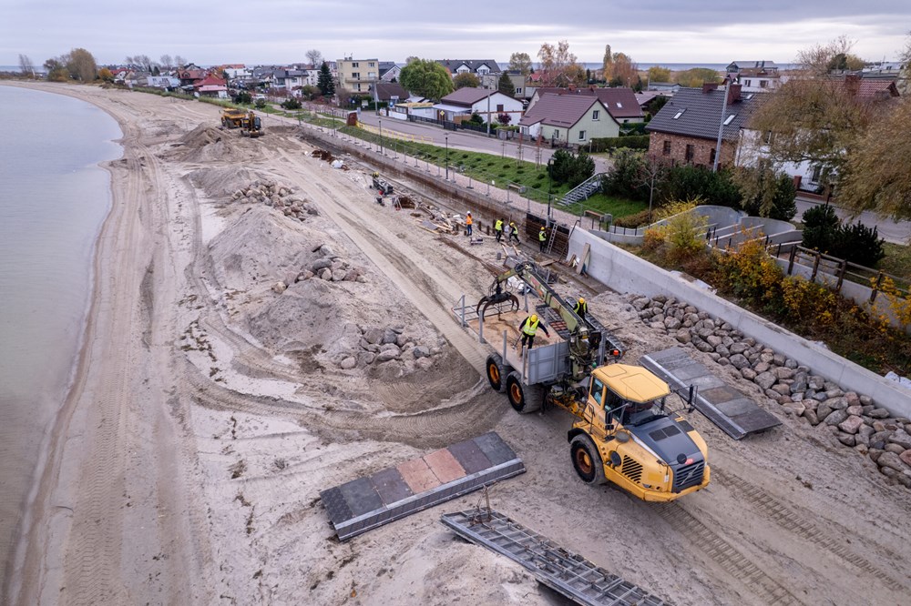 W zakładzie prefabrykacji trwają natomiast prace nad konstrukcjami stalowymi zjazdów i zejścia na plażę – montaż pierwszego zjazdu zaplanowano na listopad bieżącego roku. Całość robót przebiega zgodnie z harmonogramem. Zakończenie drugiego etapu inwestycji przewidziano na luty 2026 roku, natomiast jesienią tego samego roku prowadzone będą jeszcze prace wykończeniowe i porządkowe.