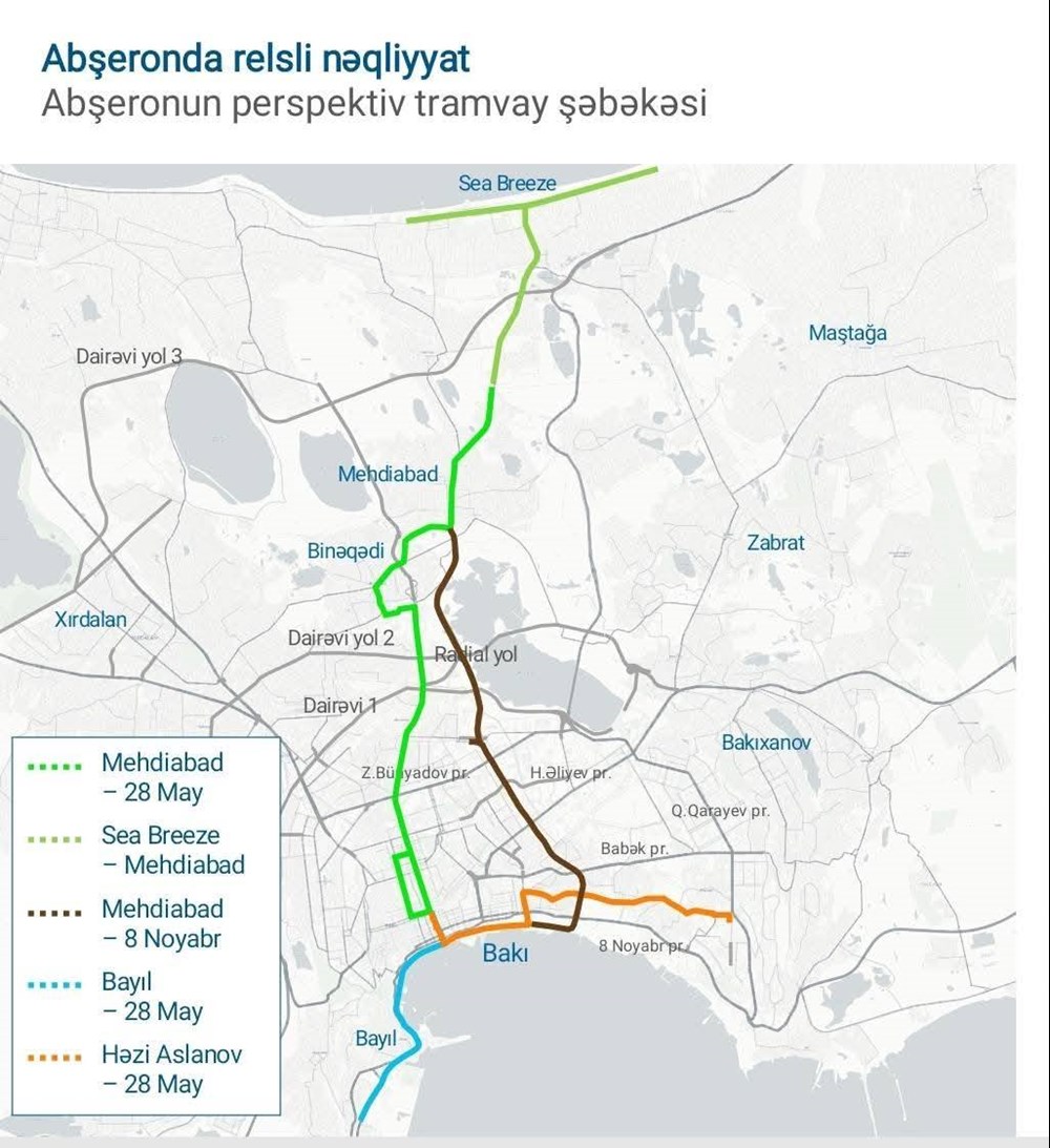 Rahman Hummatov, wiceminister rozwoju cyfrowego i transportu Azerjbejdżanu, mówił o planach tramwajowych podczas niedawnego okrągłego stołu poświęconego wdrożeniu Państwowego Programu Poprawy Infrastruktury Transportowej w Baku i okolicach na lata 2025–2030. Jego flagowym elementem ma być linia tramwajowa Mehdiabad – 28 Maj, która połączy północne osiedla Baku z centrum Na terenie osiedla M. Rasulzady planowana jest także stacja kolejowa.