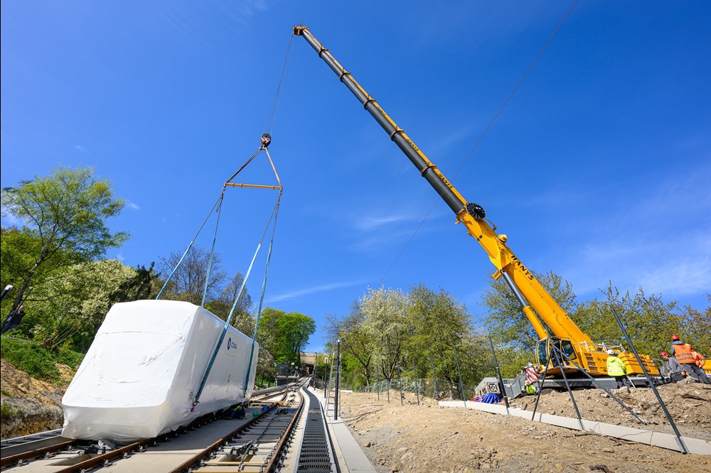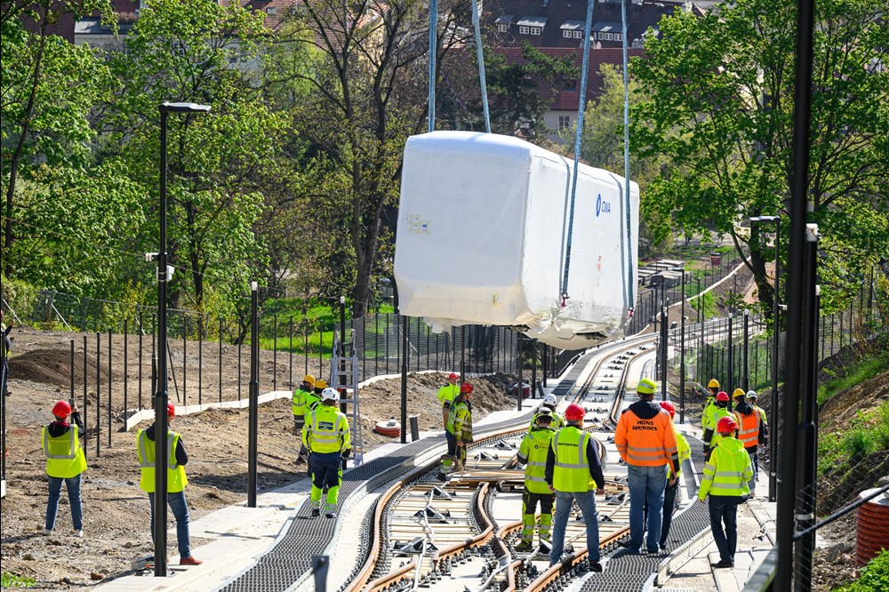 Czesi poinformowali o kluczowym etapie prowadzonej inwestycji. Na plac budowy przybył specjalny transport, który ze względu na gabaryty ładunku, odbył się w nocy. Na Petřín dotarły dwa już wagoniki, które będą obsługiwały trasę na wzgórze. Oba wozy zostały wyładowane i umieszczone na torach. Następnie wykonawca przymocował je do liny nośnej. – W najbliższych tygodniach technicy z grupy Doppelmayr i Garaventa ukończą instalację całej technologii niezbędnej do obsługi i sterowania kolejką, a także zweryfikują i usuną błędy w jej funkcjonowaniu – podkreśla Dopravní podnik hl. m. Prahy.