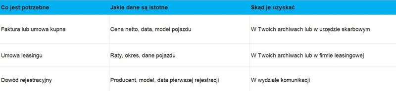 Dobra wiadomość jest taka, że po najnowszych wyrokach sądy nie wymagają już kosztownych ekspertyz ekonomicznych. Wystarczą podstawowe dokumenty: faktura, umowa kupna lub leasingu oraz dowód rejestracyjny. Procedura stała się więc znacznie prostsza niż kilka lat temu.
