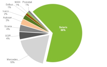 W zeszłym roku sprzedano w Polsce nieco ponad 700 autobusów miejskich. 471 z nich było marki Solarisa. Firma, jak co roku, podsumowała minione 12 miesięcy, w czasie których sprzedała w sumie 1,3 tys. pojazdów, osiągnęła przychody w wysokości 1,72 mld zł a elektryczny Solaris Urbino 12 zyskał tytuł Bus of the Year.