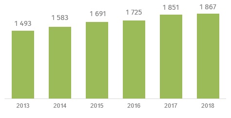 Prognoza udziału napędów alternatywnych w latach 2020-2030 w rynku autobusów miejskich w Europie. Źródło ZeEUS/UITP(VEI)Spółka od kilku lat notuje stabilny wzrost przychodów. Nie inaczej było w roku 2018. Łączna wartość obrotów w minionym roku wyniosła blisko 1,9 mld złotych.
