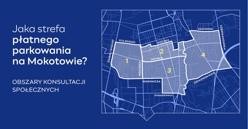 Podczas konsultacji mieszkańcy i mieszkanki będą mogli zapoznać się z koncepcją zmian organizacji ruchu i parkowania w części Mokotowa dla obszaru ograniczonego ulicami Żwirki i Wigury od zachodu; ulicami Woronicza, Domaniewską i Idzikowskiego od południa; ulicą Czerniakowską od wschodu oraz ulicami Gagarina, Różaną i Kulskiego od północy.